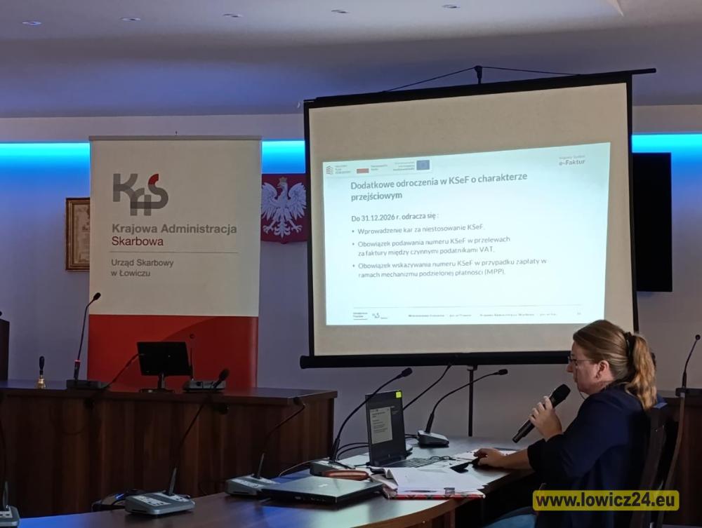 W dniu 9 października 2025r. w Sali Konferencyjnej Starostwa Powiatowego w Łowiczu odbyło się spotkanie informacyjne poświęcone Krajowemu Systemowi e- Faktur (KSeF).